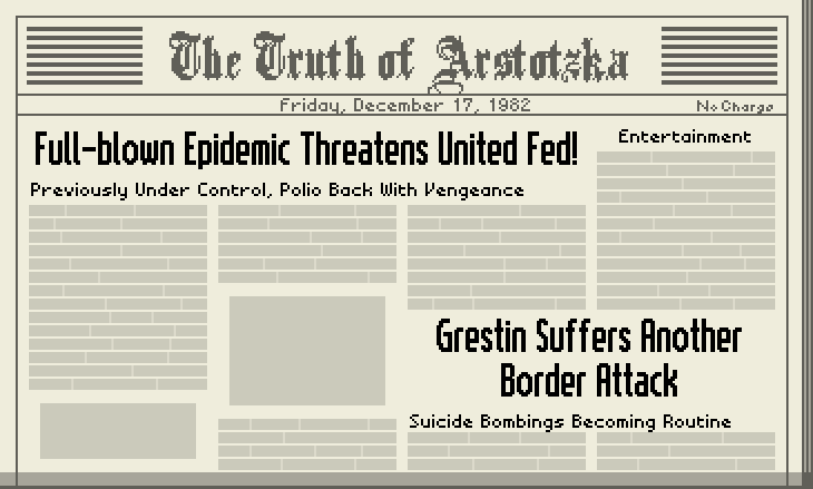 - In the game files, the fifth entrant is scripted to be a Kolechian female, but this has been disabled, so they can be of any nationality besides Arstotzka and either sex.